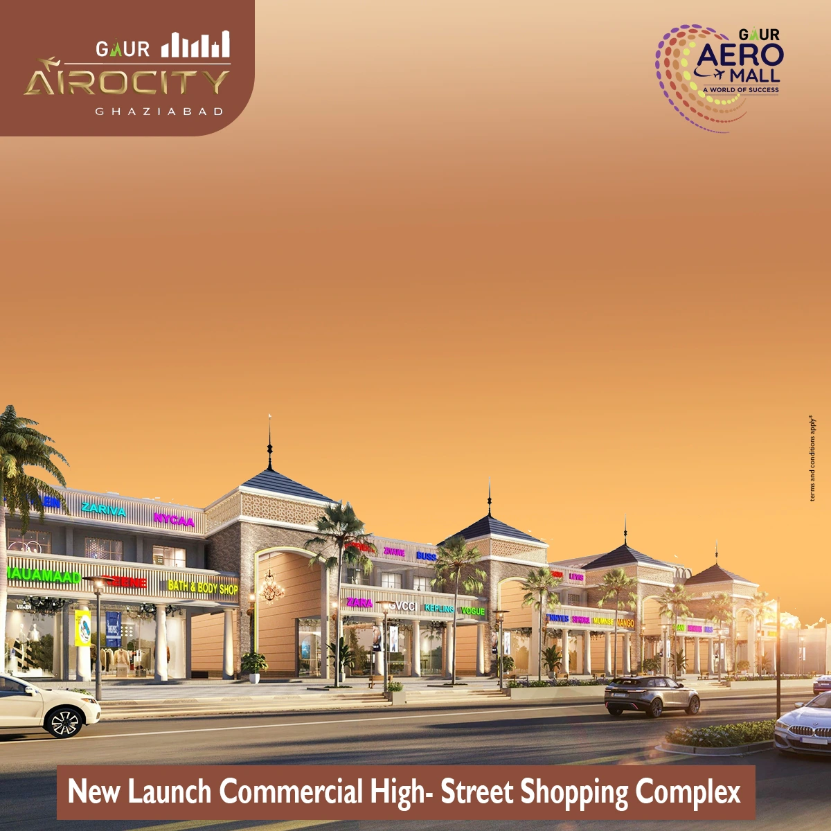- First part : GAUR AERO MALL- beautifully designed commercial facility that will win over visitors and fast become a hotspot for events. It will establish higher standards and enthral tourists because it was thoughtfully planned and boasts world-class amenities. It has total 474 Shops with 2 floors. On ground floor sizes are 155 SQFT to 750 SQFT with starting price of ₹79 Lakh*. On first floor sizes are 194 SQFT to 670 SQFT . It has Movie screens ,Retail shops ,Kiosks and Restaurants .